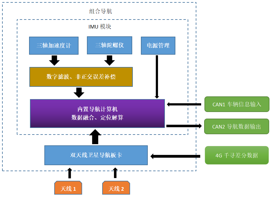 1. A0090是我公司推出的高精度GNSS和IMU(戰術級別)緊耦合導航技術(支持RTK ,R定位精度2CM+1PPM)和車輛信息(輪速、檔位等)滿足量產需求的高性能組合定位系統,通過GNSS衛星導航技術和慣性導航技術的相互補充,保障在少于4顆衛星的情況下依舊可以達到高精度位置、姿態、速度信息,同時保證在系統誤差增大時利用GNSS數據對INS系統進行修正保證在各種場景下(高速路、地庫、高架橋、隧道、城市街道、港口等)通過數據總線向車輛提供實時的三維位置、三維速度、三維姿態信息進行精確測量幫助車載計算機進行路徑規劃、軌跡追蹤、車輛轉向等車輛控制;同時配合攝像頭、相機、激光雷達等環境感知設備提供三維高精度的位置、姿態基準,實現即時定位與地圖構建(SLAM),保障無人車的自主定位和導航。在無衛星信號的場景下,結合車載傳感器依然可以支持高達5分鐘,定位誤差0.5米,航向精度保持在0.1°,俯仰、橫滾精度小與0.2°的優異性能。